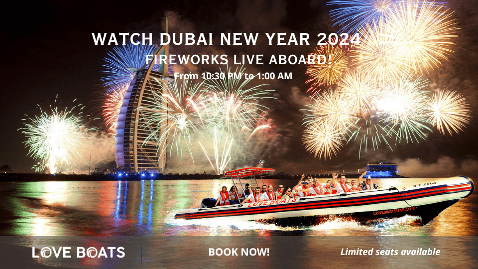 Watch Dubai New Year 2024 Fireworks Live aboard Love Boats